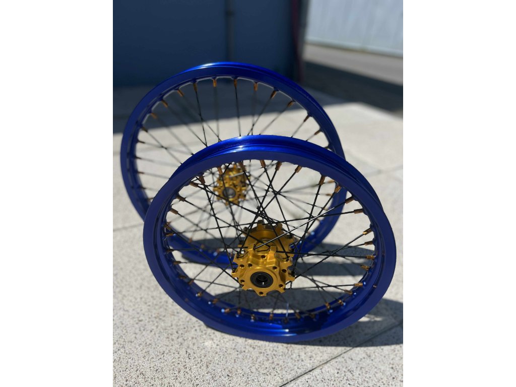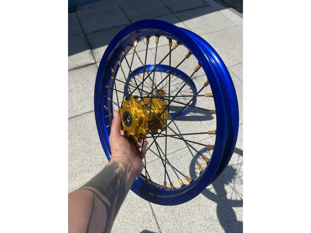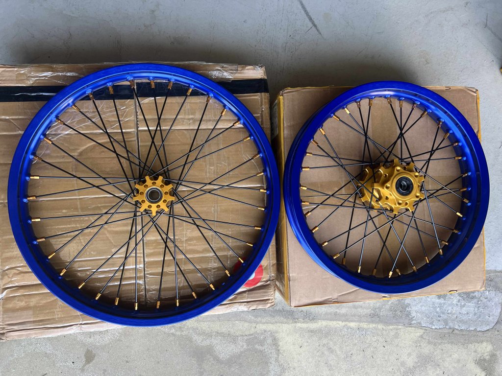 Kompletní sada kol pro Surron LightBee, v rozměru 19" přední + 16" zadní kolo v nádherné modro-zlaté kombinaci (přesně jak na foto)